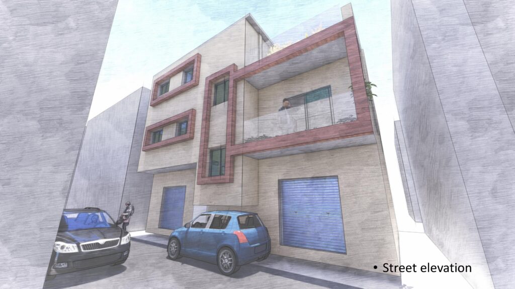 Prime Associates was entrusted with the design of an additional floor above an existing G+2 bungalow at New Sangvi, Pune. The client’s requirement was to retain all major architectural elements of the existing structure while introducing a modern design for the new floor using ACP panels.