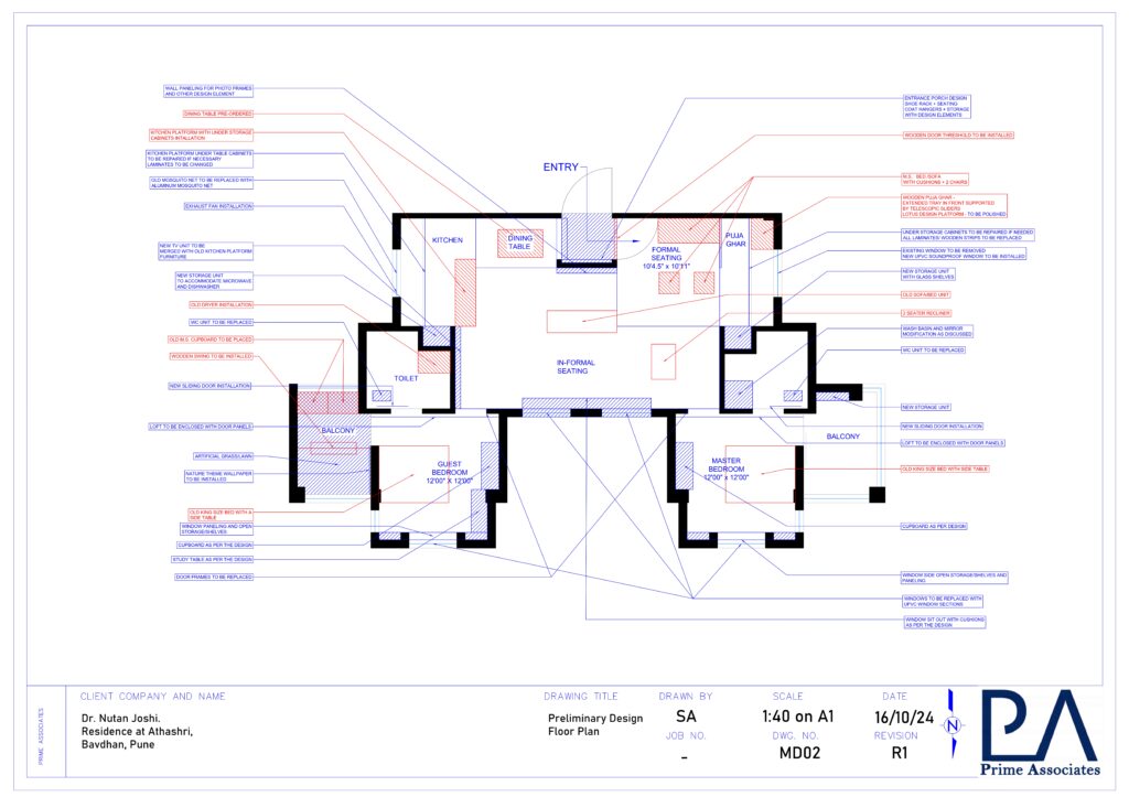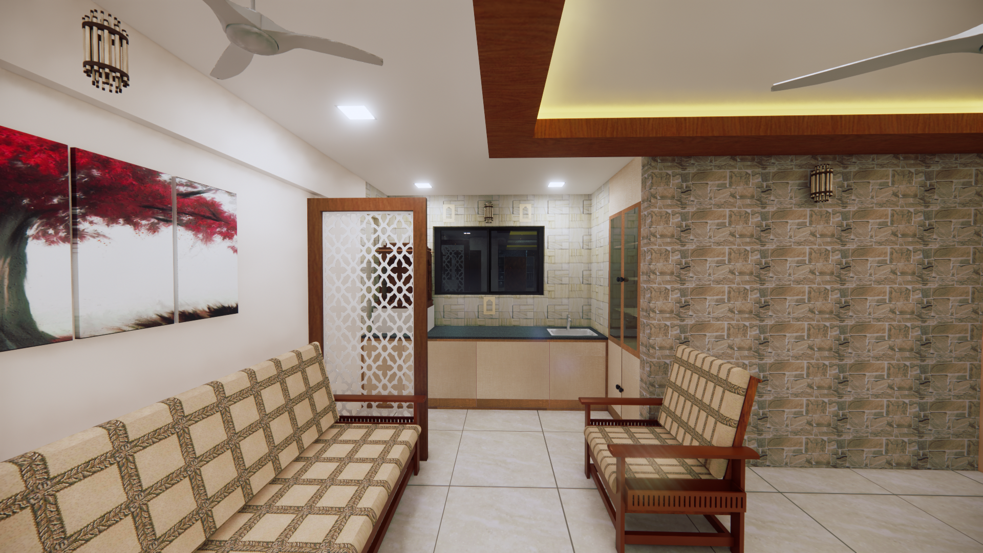 Prime Associates completed the development of a 1,150 sq. ft. 2BHK flat with a focus on classic old-style interiors and furniture. The project included complete tiling, waterproofing, designing, material selection, and construction, supported by detailed 3D modelling and rendering to ensure accuracy and client satisfaction.